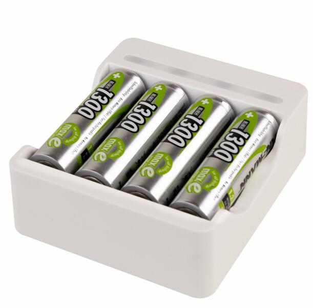 ANSMANN Töltő, Ansmann, Basic IV, 4 rekeszes, 4 db AA elem mellékelve, 1300mAh NiMH, USB kábel 1 m, Fehér (1001-0120-01)