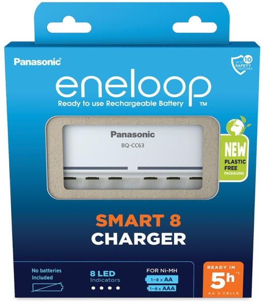 eneloop BQ-CC63E AA/AAA akkumulátor 1-8 cella töltésére