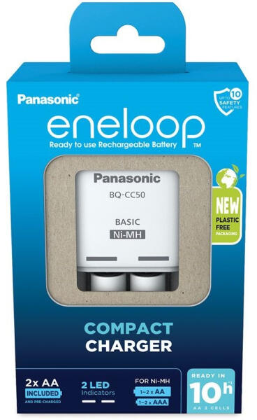 K-KJ50MCD20E töltőszett, melyben 2 db eneloop AA 2000 mAh Kompakt töltőMŰSZAKI ADATOKBemenet:AC100-240V 50-60HzKimenet:DC 3V AA 250mA x 2 / AAA 120mA x 2Töltésvezérlés:Timer cut (13 óra) EgyéniIndikátor:LED x 2 Töltés: BE, Teljesen feltöltve: KITöltő akkumulátor:AA x 1, 2/ AAA x 1, 2 cellaMéretek (kb. ):5 x 12,1 x 7,0 cmSúly (kb. ):86g