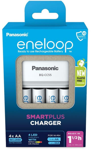 eneloop K-KJ55MCD40E akkumulátor gyorstöltő 4 db 2000mAh AA akkumulátorral
