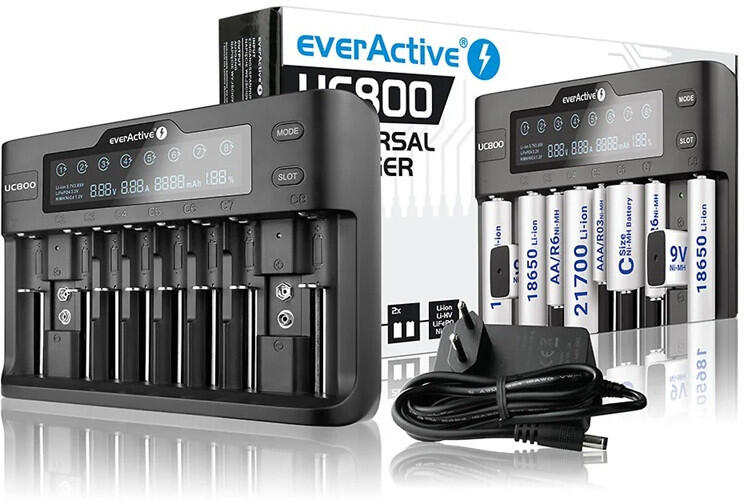 everActive UC800 1, 2V/3, 6V/3, 7V Li-ion/LiFePO4/Li-HV/Ni-Mh AA/AAA/C/D/9V akkumulátor töltő (everActive-UC800)