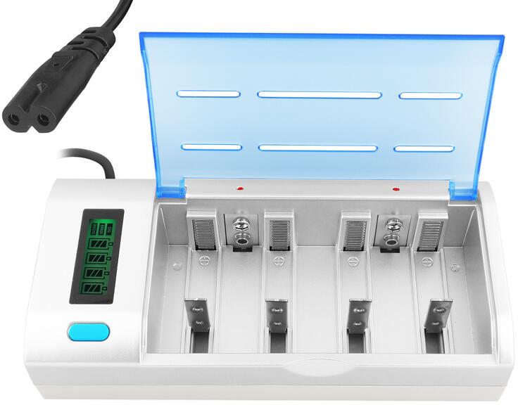 Kiváló minőségű, töltésjelzővel ellátott LTC akkumulátortöltő. Ez a termék 4 db AA/AAA/SC/C/D és 2 db 9V akkumulátor töltésére alkalmas. A töltő LCD kijelzővel van ellátva, amely az akkumulátorok töltöttségi mutatóit mutatja. A készülék túlmelegedés elleni védelemmel rendelkezik, amely automatikusan kikapcsol, ha a hőmérséklet meghaladja a 60°C-ot, így védve a töltőt és az akkumulátorokat a károsodástól. A készülék 1000mA töltéssel rendelkezik az akkumulátorok gyors feltöltéséhez. A készülék beépített akkumulátor kisütési funkciója megakadályozza a memóriaeffektust - az akkumulátorok kapacitásának látszólagos vagy tényleges csökkenését. Támogatott újratölthető akkumulátorok: AA/AAA/SC/C/D/9V Ni-Mh/Ni-CdTöltési feszültség és áram: AA/AAA/AAA/SC/C/D1,2V DC, 1000mA Töltési feszültség és áram: 9V9V DC, 25mATápellátási feszültség: 100-240V AC, 50/60HzA termék méretei: 19,3 x 9,3 x 5,2 cm