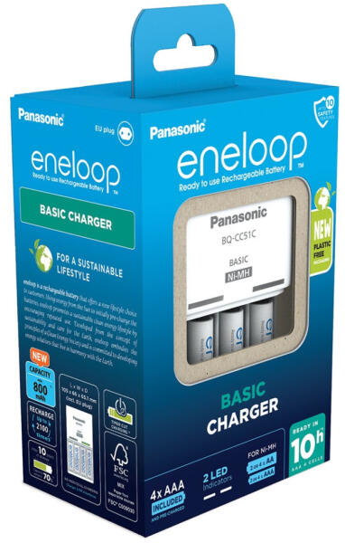 Panasonic Eneloop BQ-CC51 Töltő + 4 db AAA Akkumulátor (PS-BQCC51-4AAA)