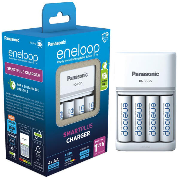 Panasonic Eneloop BQ-CC55 Akkumulátor Töltő + 4 db AA Akkumulátor (PS-BQCC55-4AA)
