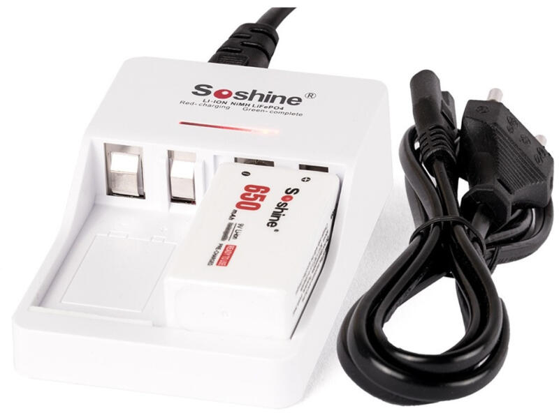 Soshine V1 9V Block 6F22 Li-Ion, Ni-MH, LiFePO4 akkumulátortöltő (9V-CHARGE-LIION)