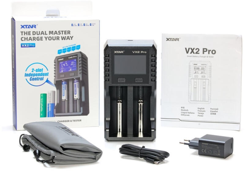 XTAR VX2 PRO SET1, 2V/1, 5V/3, 2V/3, 6V/3, 7V NiMh/LiFePo4/Li-ion akkumulátor töltő + adapter (Xtar-VX2-PRO-set)